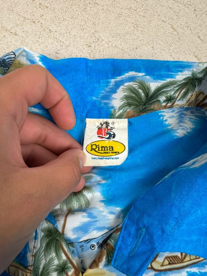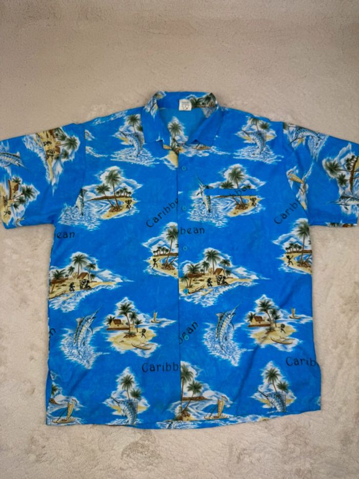 Chemise Vintage à motifs Style Hawaïenne Bleu Clair Taille M - photo numéro 1