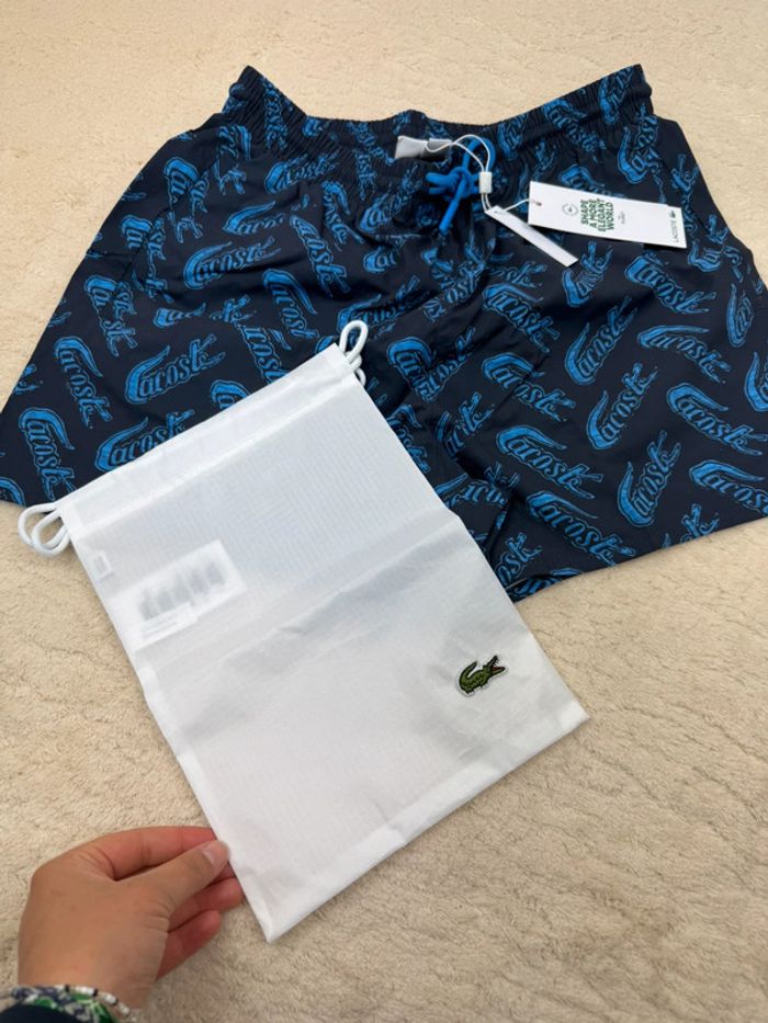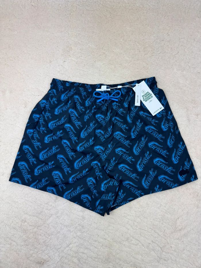 Short de bain Lacoste monogramme Noir et Bleu Neuf Taille S - photo numéro 1