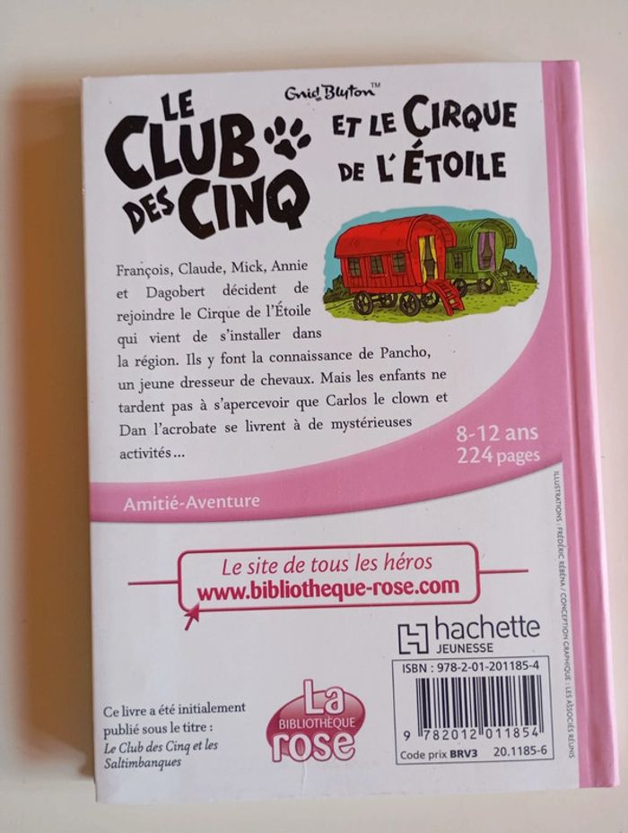 Cet été, les Cinq ont décidé de passer leurs vacances en roulotte. Ils s'installent au bord d'un lac, tout près du camp d'un cirque. Ils se lient rapidement d'amitié avec Pancho et son singe Bimbo. Mais l'oncle de Pancho, Carlos, et son acolyte Dan, ne voient pas l'arrivée des enfants d'un très bon oeil... Éditeur ‏ : ‎ Hachette Roman 224 pages Dimensions ‏ : ‎ 13 x 1.5 x 18 cm Livre en excellent état Je vends d'autres livres de la même collection #phil_peg_bibliothequerose ou sur les vacances #phil_peg_vacances, l'été #phil_peg_été #clubdescinq #vacances #été #cirque