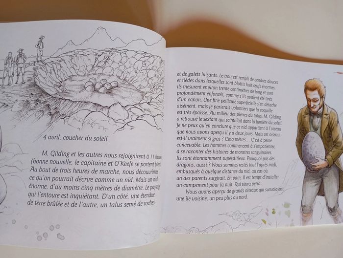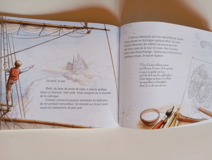 Journal de bord de Lord Nathaniel Parker - Avril-Juin 1819 A bord de l'Argonaute Au tout début du XIXe siècle, lord Nathaniel Parker, un jeune britannique passionné de sciences naturelles, embarque à bord de l'Argonaute pour explorer le Pacifique. Une tempête éclate et le bateau échoue dans un archipel inconnu. Aucune trace de présence humaine, mais des animaux et des plantes toujours plus étranges : les îles fourmillent de monstres fantastiques. Jour après jour, Nathaniel Parker consigne dans un journal ses découvertes étonnantes et remplit son carnet de croquis. Éditeur ‏ : ‎ Hatier 48 pages Dimensions ‏ : ‎ 22 x 0.3 x 16.5 cm Livre en très bon état #phil_peg_dragon #navigation #sciencesnaturelles #dragon #argonaute #ilesdudragon #île #déocuverte