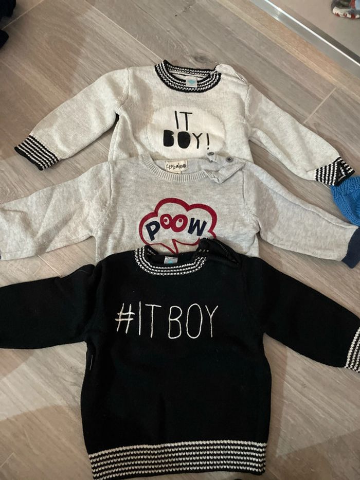 Ont été portés mais je n’y vois pas de tache ni de trou Taille 12 mois 3 pulls hiver