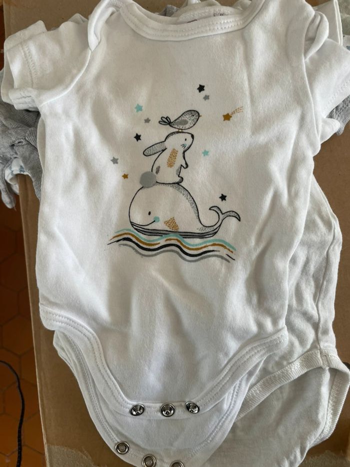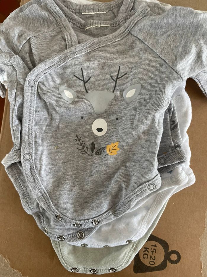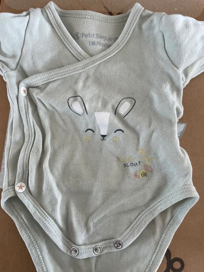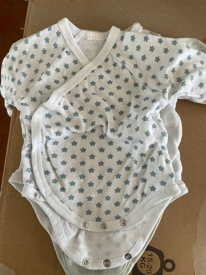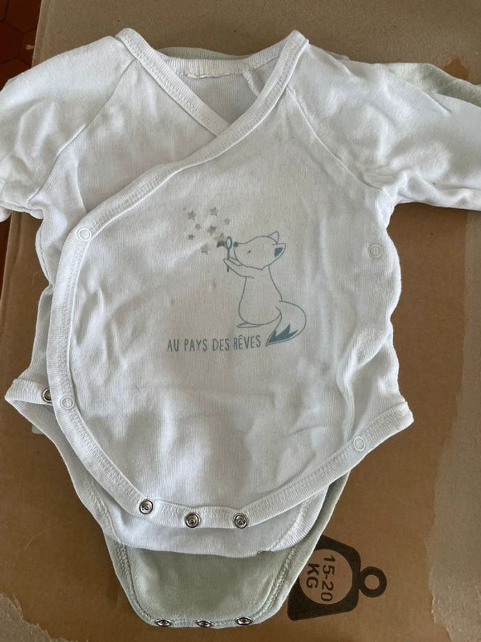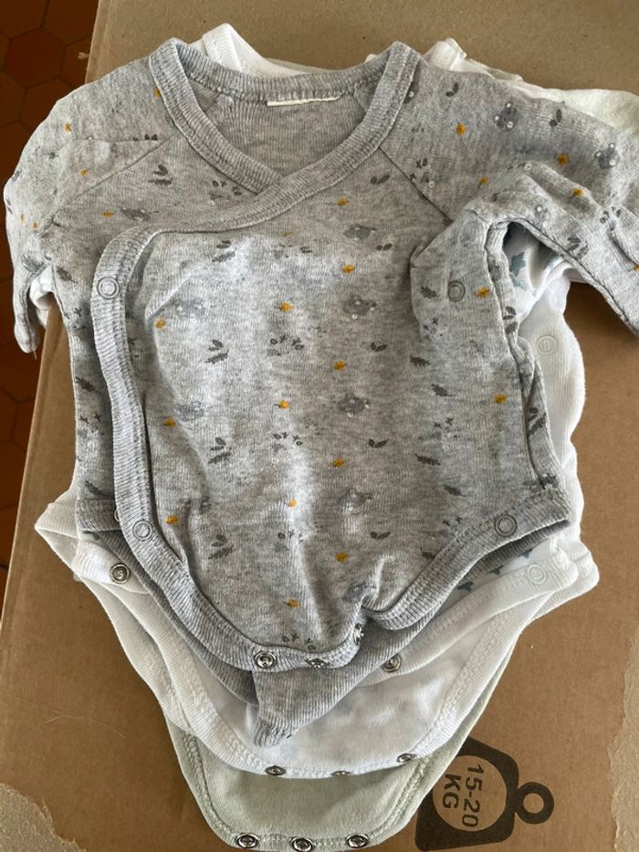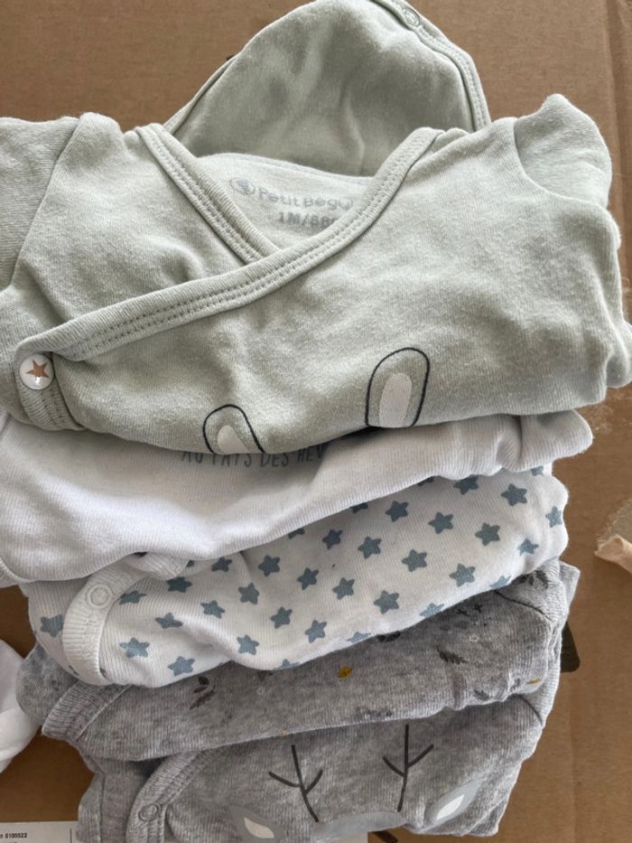 Taille naissance / 1 mois Très bon état - peu porté Plusieurs marques dont petit béguin Jusqu’à 56cm 7 pièces