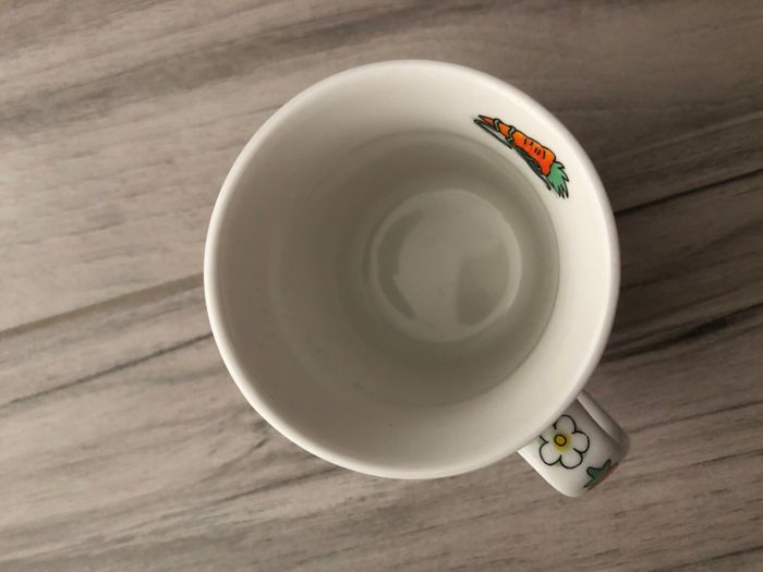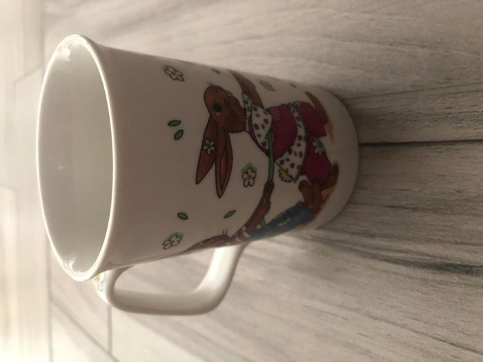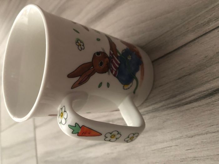 Très jolie tasse avec anse. Motif lapins Hauteur: 11 cm