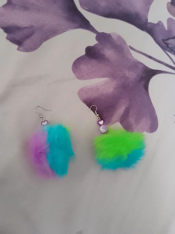 Boucles d'oreilles pompons colorés - photo numéro 3