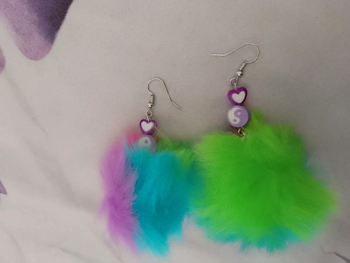 Boucles d'oreilles pompons colorés - photo numéro 2