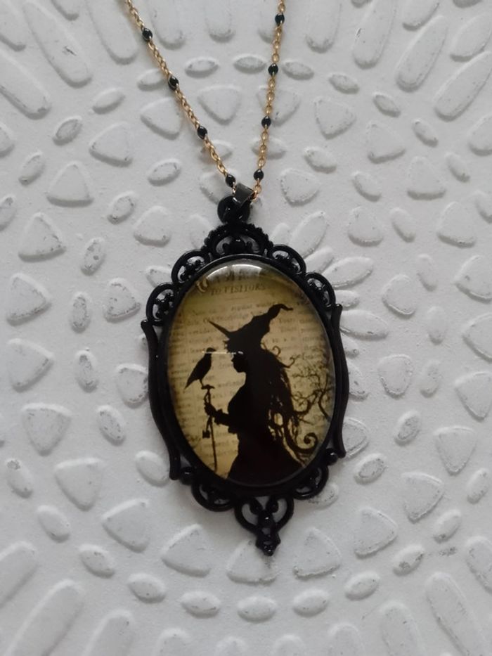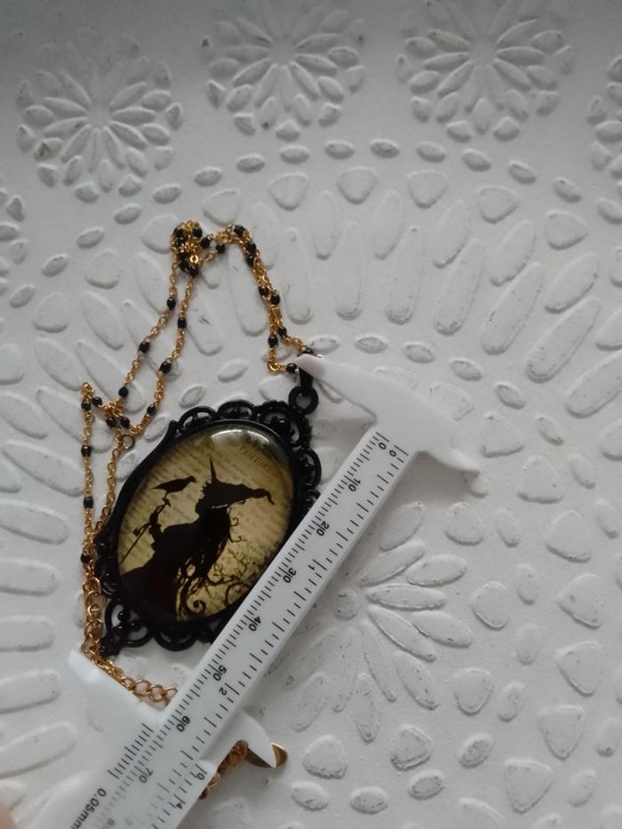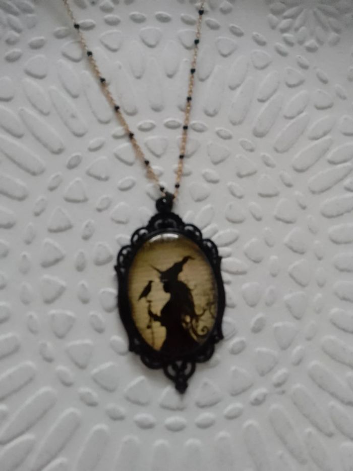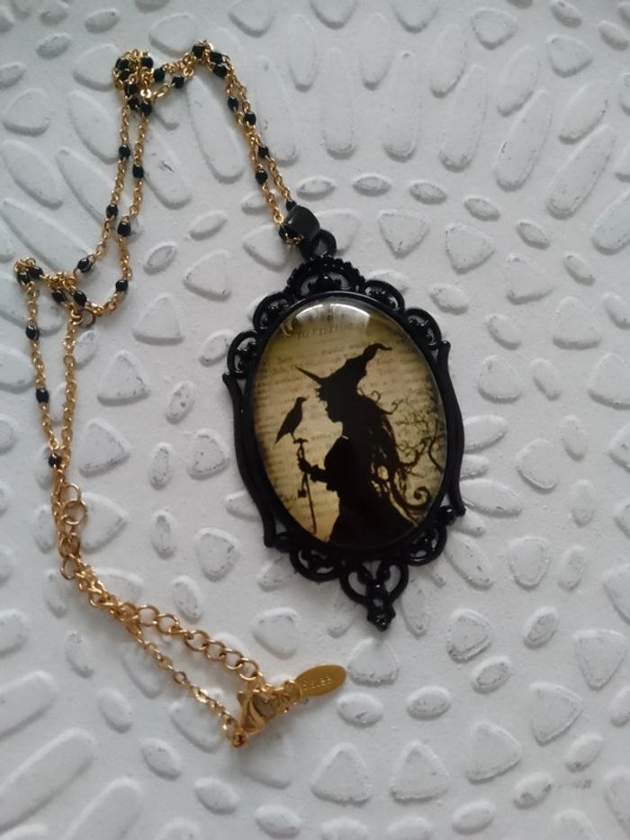 Médaille métal et verre Chaîne acier inoxydable 45 cm Non porté Voir aussi mortelle Adèle Ariol TomTom fleurs bohème miracle lipnick royaumes de feu pierre naturelle sautoir magie sorcellerie pendule hiver chaud halloween