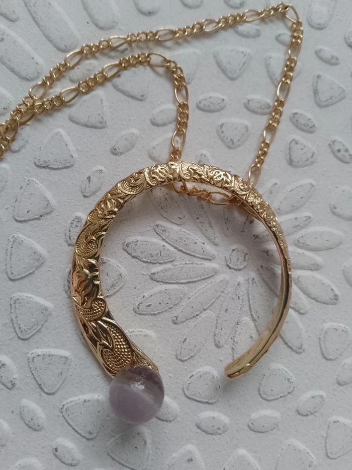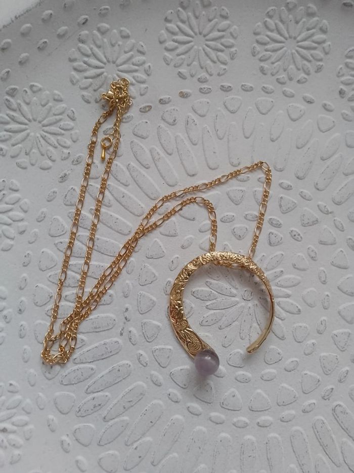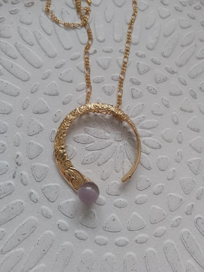 Jamais porté Chaîne acier 60 cm Pierre naturelle de lithothérapie