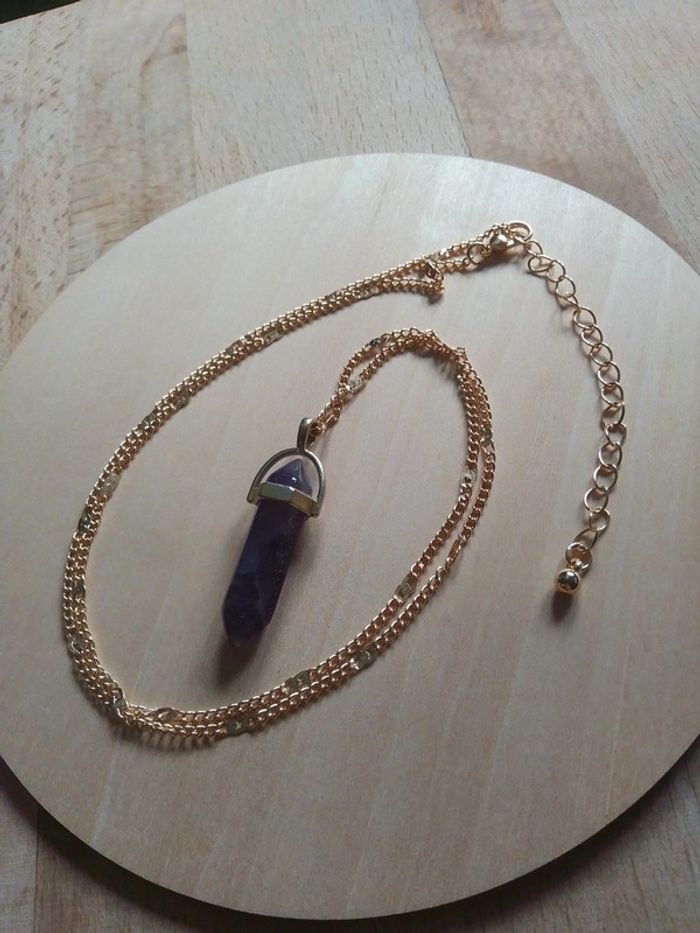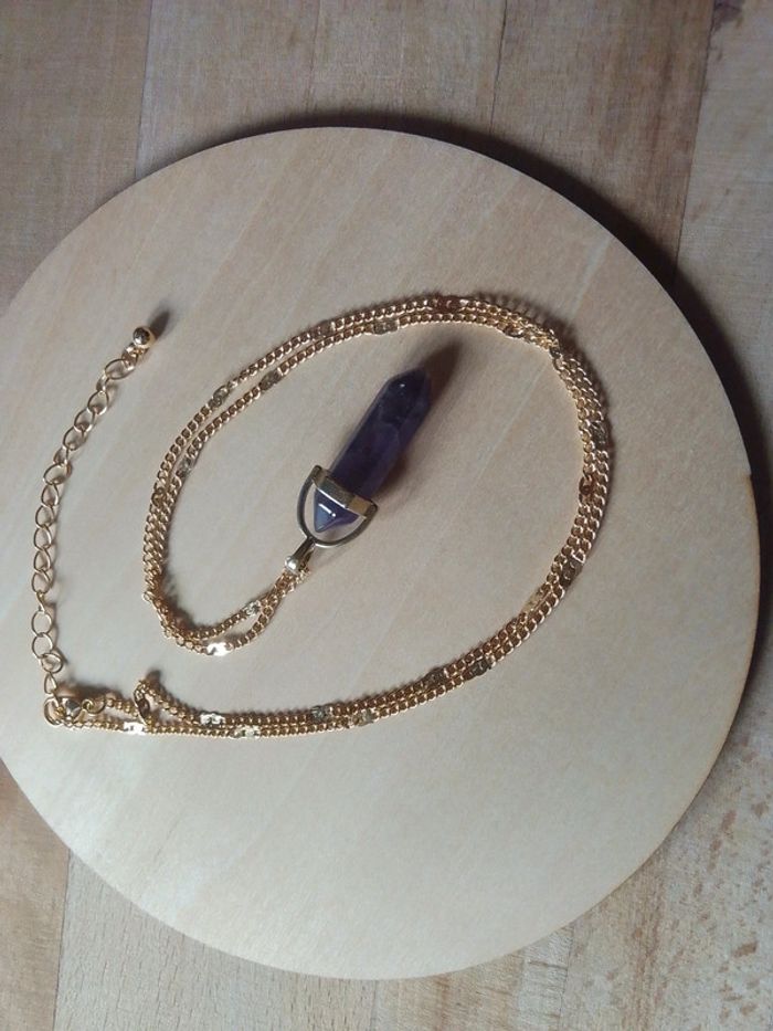 Sautoir pointe de de pierre d'améthyste naturelle - photo numéro 2