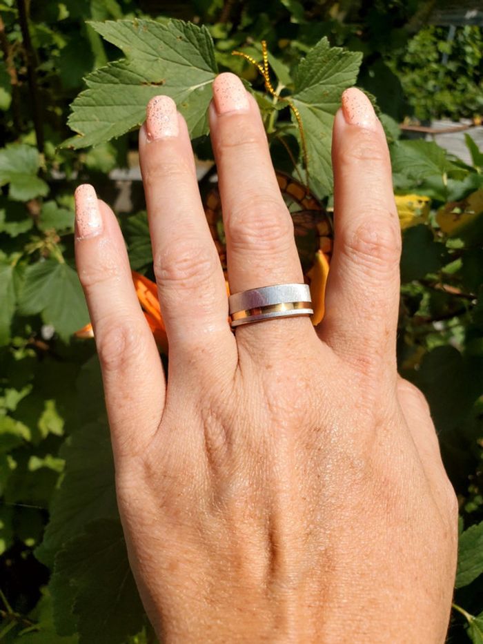 Bague en acier inoxydable brossé bicolore Taille 18