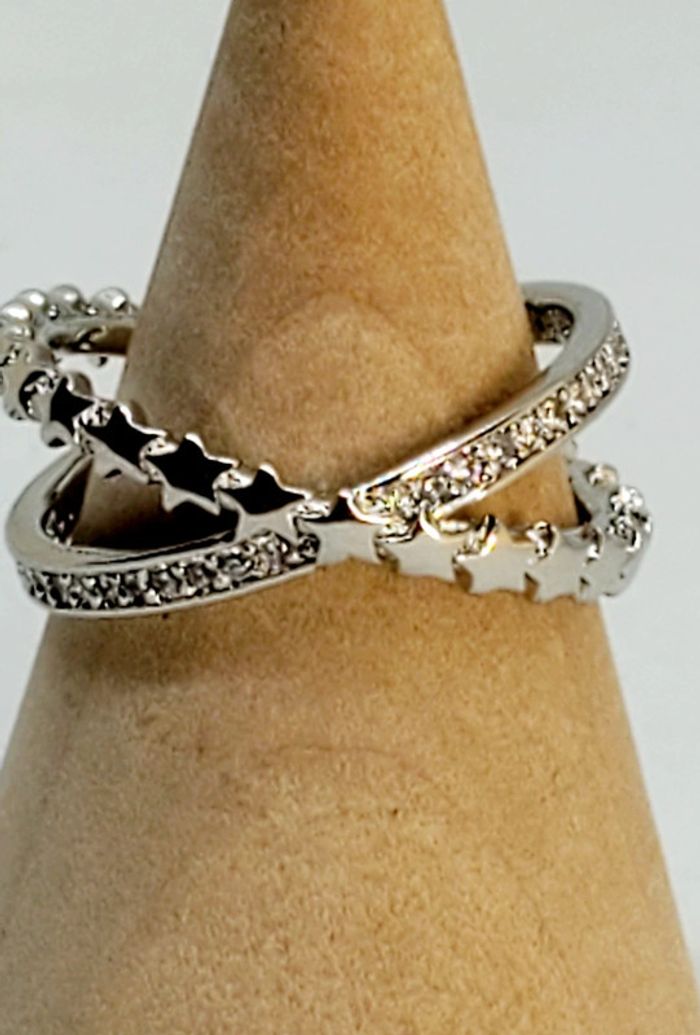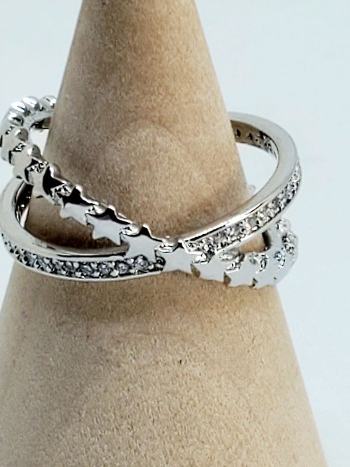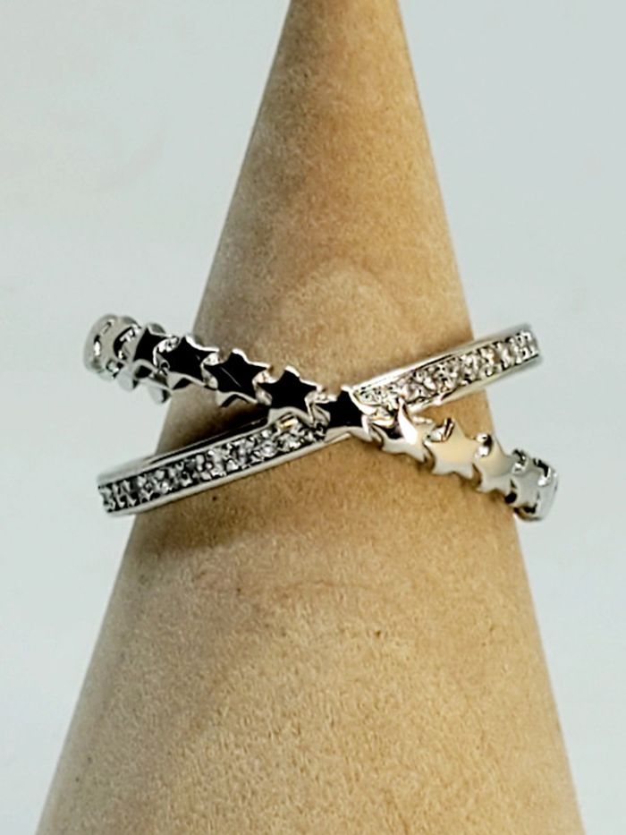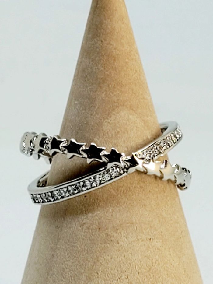 Bague en argent 925 Taille 18 Étoiles et strass Tour complet