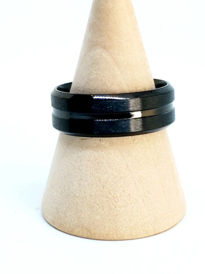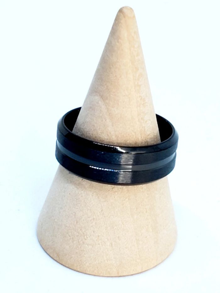 Bague homme en acier inoxydable noir Un liseré Taille 20mm