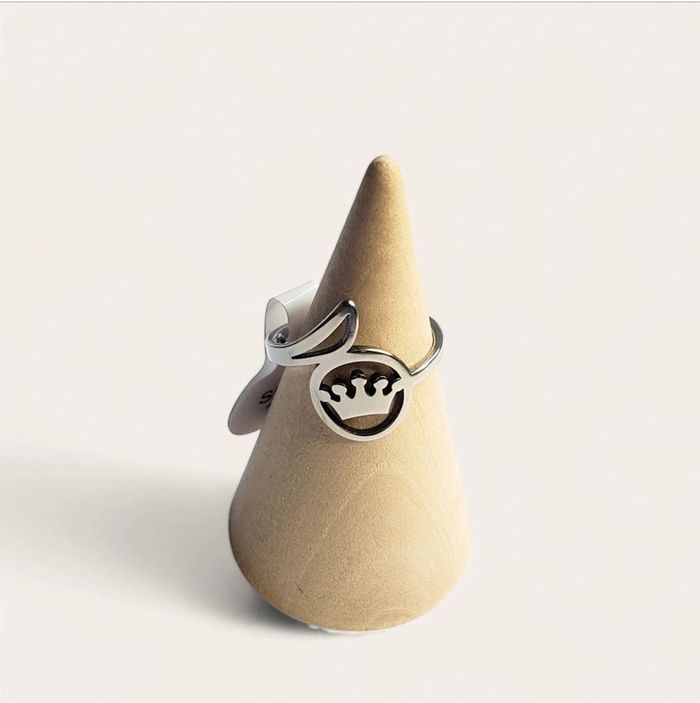 Bague en acier inoxydable Joli travail avec couronne 👑 Idéal petite princesse Taille 16