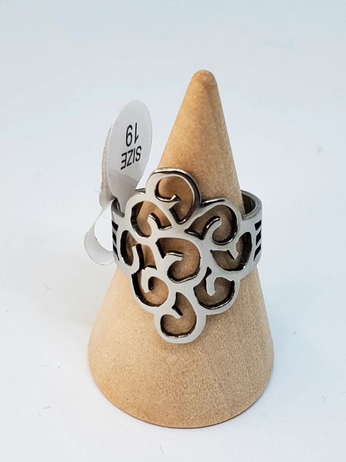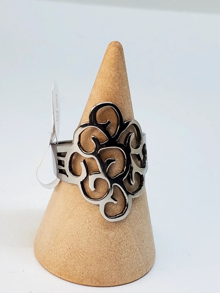 Bague en acier inoxydable résistant à l'eau. Formes arabesques artistiques Taille 19 Vendeur pro