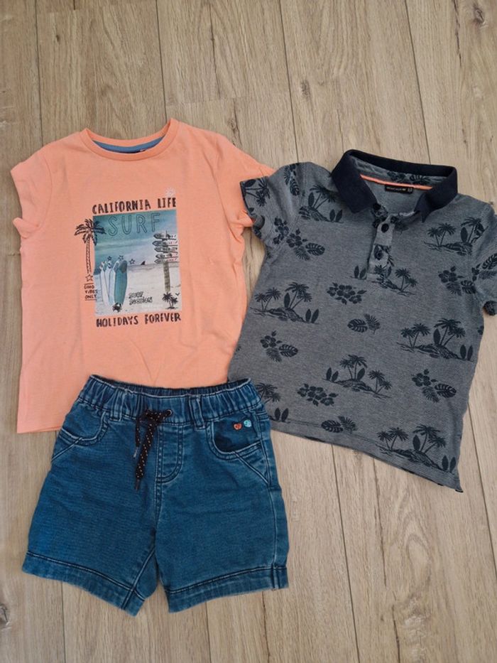 Ensemble garçon de chez Sergent Major Thème : Fleurs d'Australie 🌸 - un T-shirt, 6 ans surf California - un polo MC avec palmiers 🌴 6 ans - un short, 4 ans. Taille ajustable avec boutons et élastiques. Très bon état pour l'ensemble. Mon fils le portait à l'âge de 5 - 6 ans. Mon dressing est rangé par taille. Pour voir tous mes vêtements et accessoires de 4 à 6 ans, cliquez sur les liens #celine_yiyi_4a #celine_yiyi_5a #celine_yiyi_6a ATTENTION pour que les liens fonctionnent, pensez à supprimer vos filtres et recherches 😊