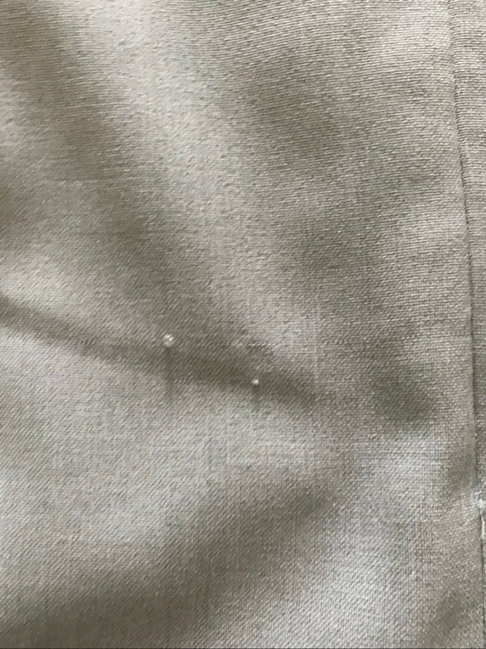 Porté mais aucun trou aucune tâche Doublure Noté taille 46 mais correspond à du 42 Longueur 55 cm 2 fils tirés derrière ( voir dernière photo ) N’hésitez pas à demander plus de renseignements ou photos .