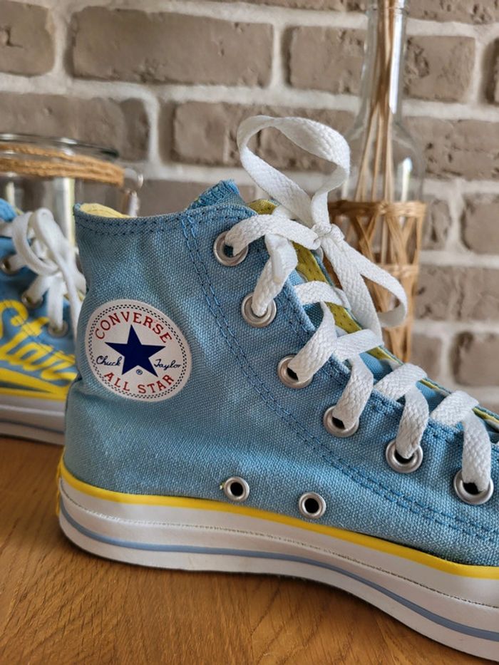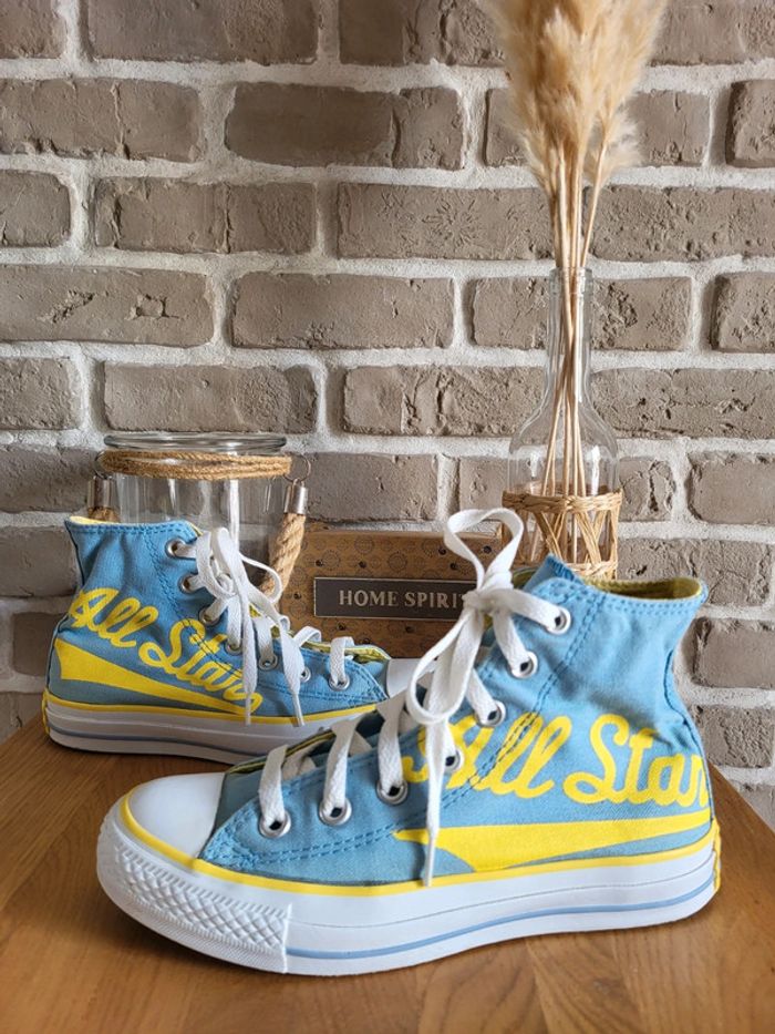 Baskets Converse All Star vintage bleu et jaune - photo numéro 1