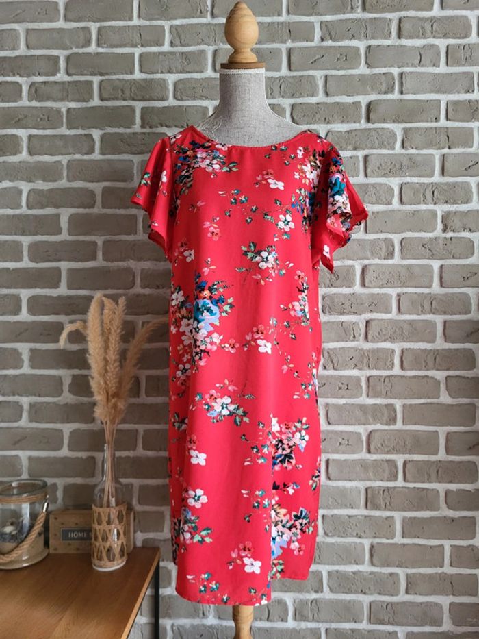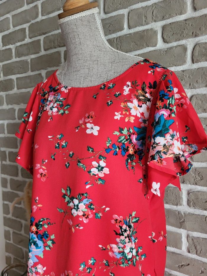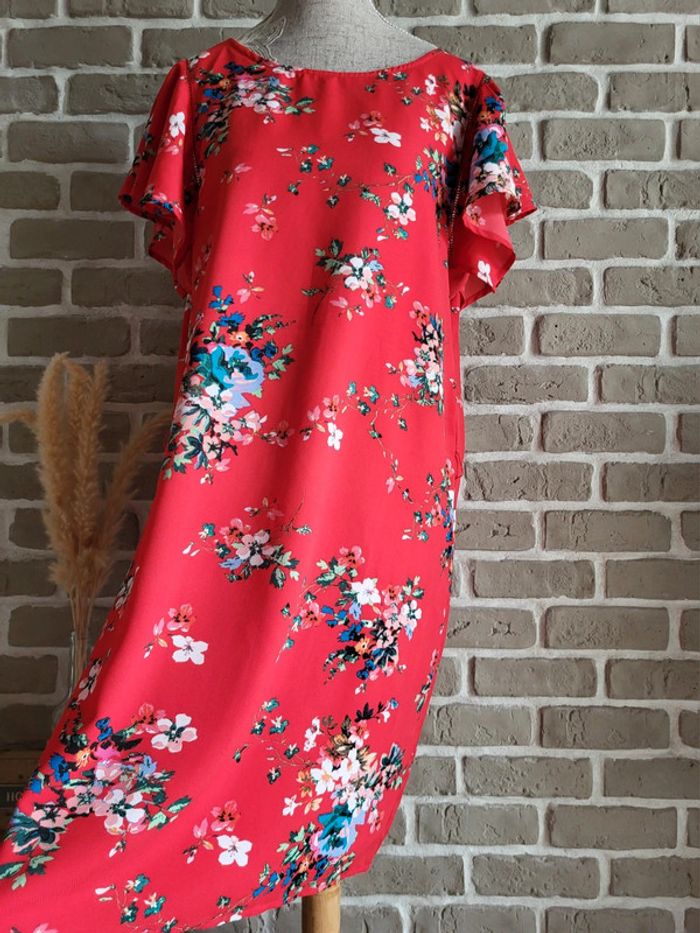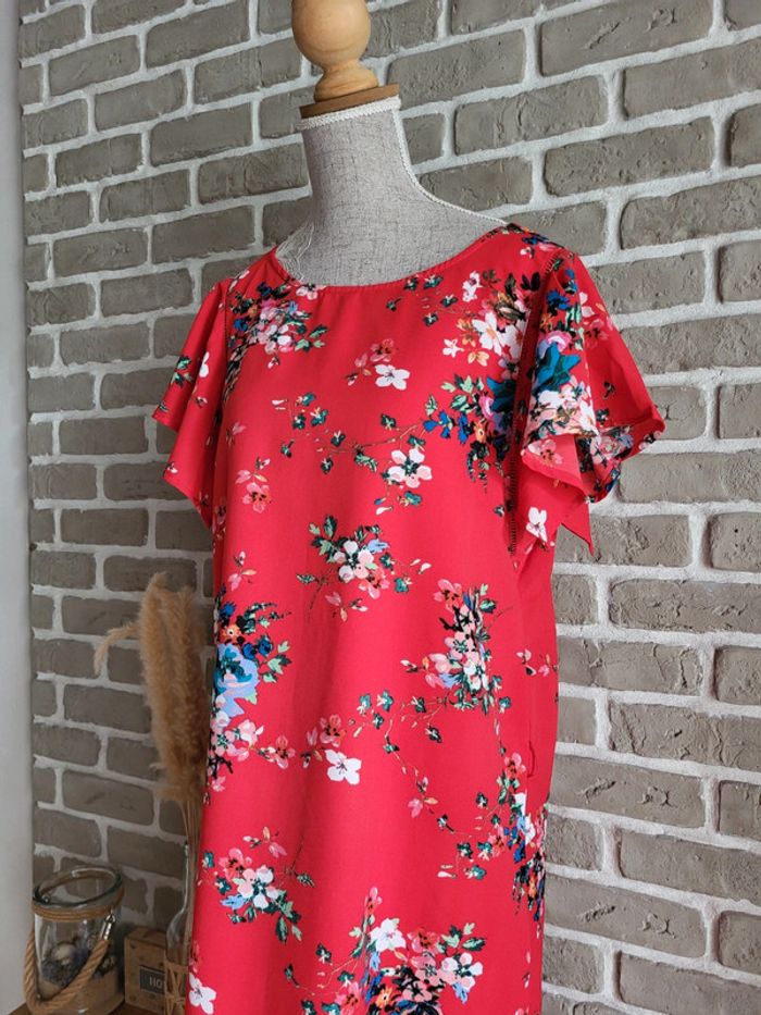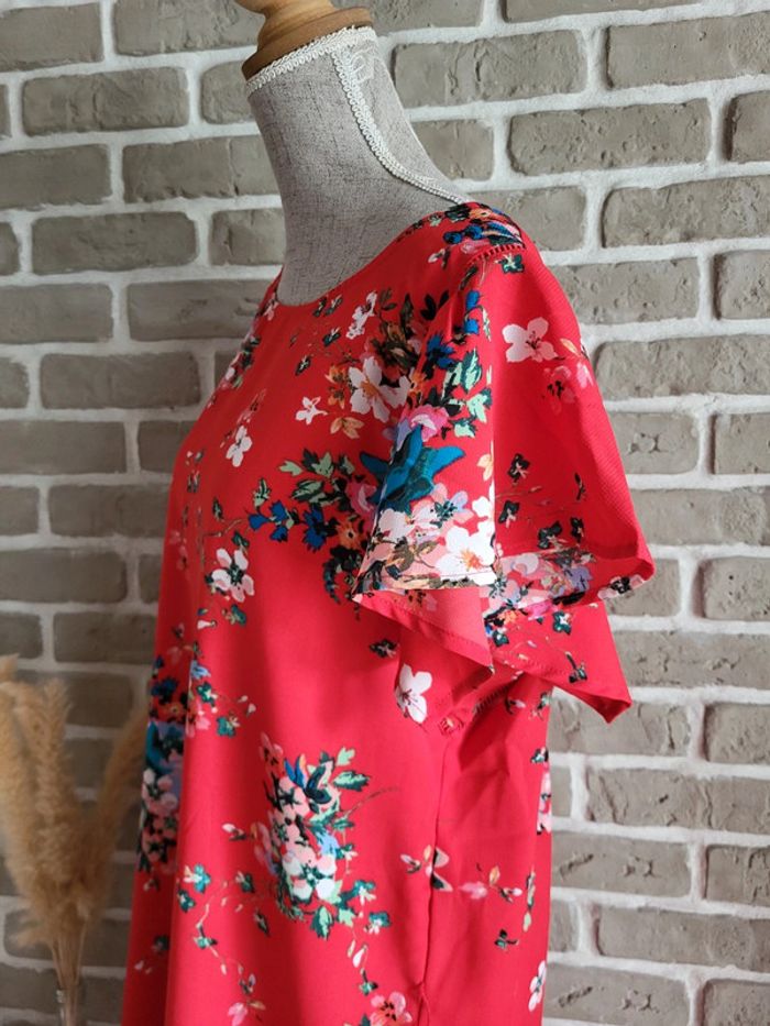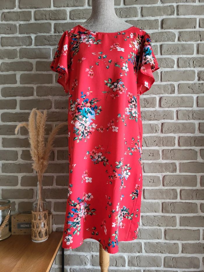 💝 Bénéficiez d'unet réduction en créant lot dans mon dressing 🛍️ 🌸 Jolie robe d'été Promod en très bon état 🎀 Tissu fluide imprimé bouquet de fleurs sur fond rouge Doublé (sauf manches) 🪷 Coupe ample, petites manches papillon Ouverture en goutte d'eau dans le dos avec un lien à nouer dans la nuque 🍥 Taille M 38 🩷 Portez-la avec des sandales dorées et une pochette en osier pour une tenue estivale simple mais élégante