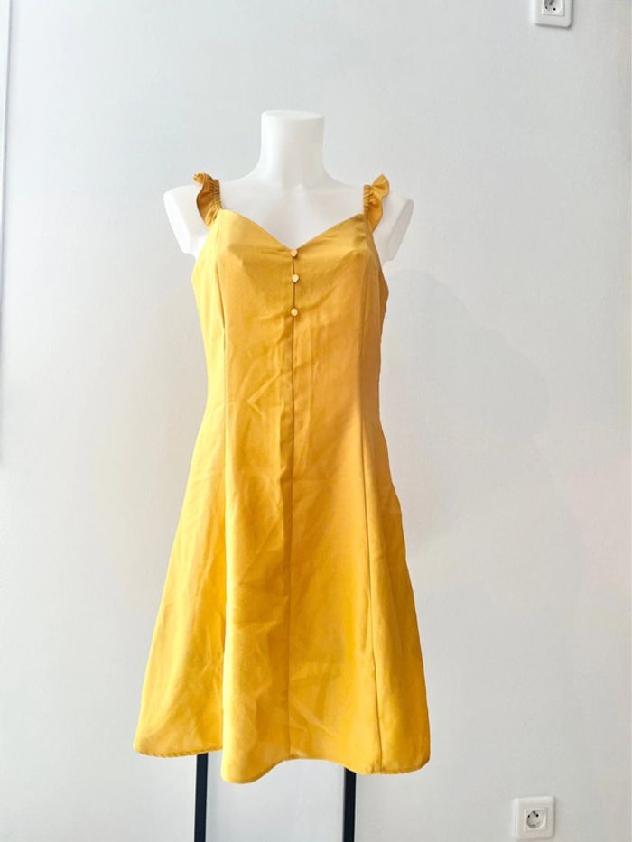 Robe neuve avec étiquette Naf naf Valeur 49,99€ Moutarde Taille 36 les mesures Aisselles au bas à peu près 67cm Aisselles à aisselles 40cm Longueur totale 89cm Elle taille correctement #celdjifemme #celdjirobe #celdjits Réduction sur lots