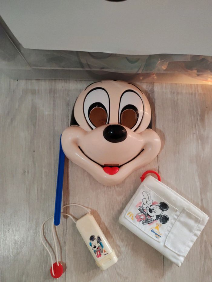 Lot de 3 figurines McDonald's Mickey en bon état un portefeuille un masque et un stylo qui ne fonctionne plus