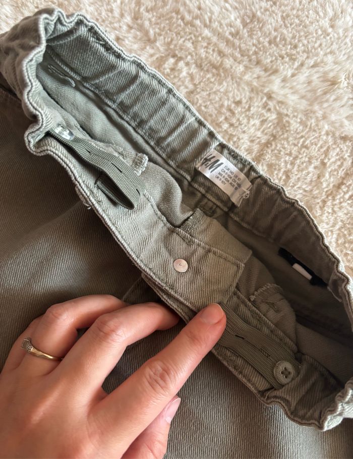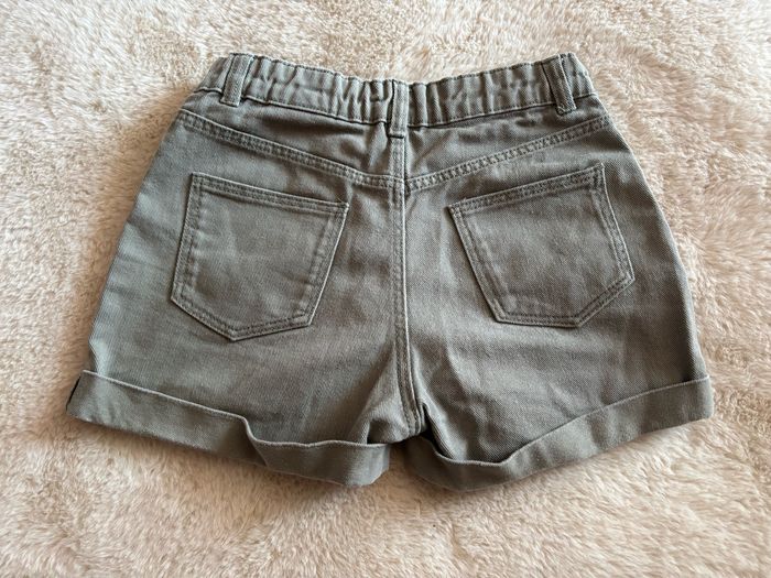 Short en jean 140 cm - taille 10 ans. Acheté chez H&M. Étiquette de composition coupée. Couleur vert olive. Réglable à la taille. Élastique à la taille.