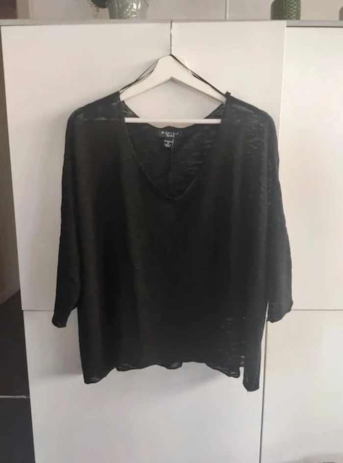 T-shirt à manches mi longues, large style blouse en taille M. Marque Amisu, marque de la boutique New Yorker. Bon état, un peu bouloché mais c'est sa matière naturelle qui fait ça. Un peu transparent. #vulariFemmesM38