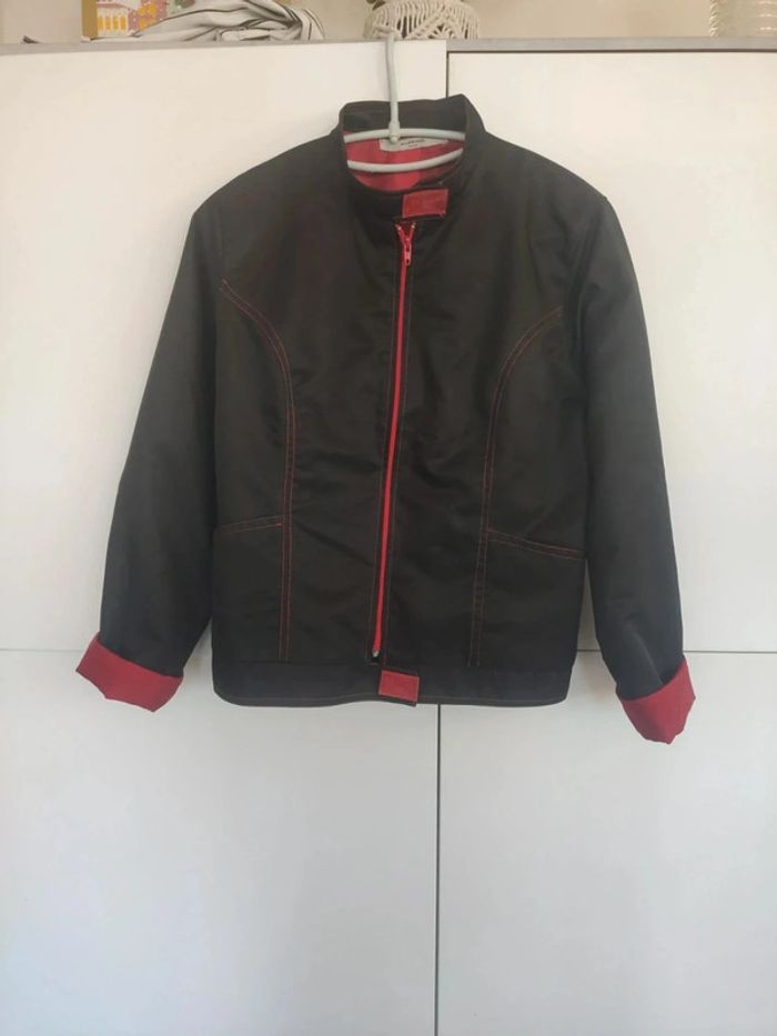 Blouson léger noir avec surpiqûres et doublure rouge. Vintage ! 2 poches, taille 2, correspond à un M. Marque Alessio