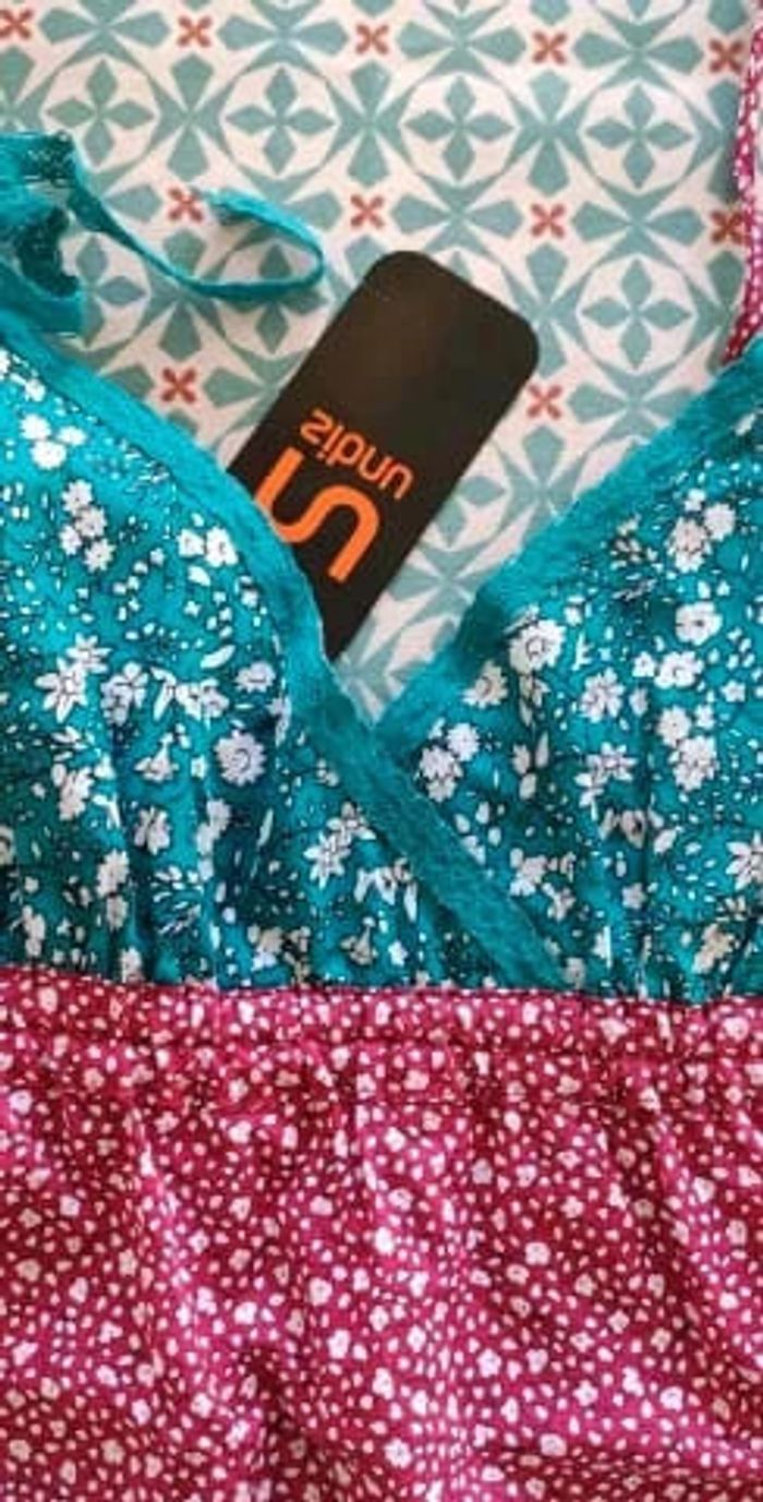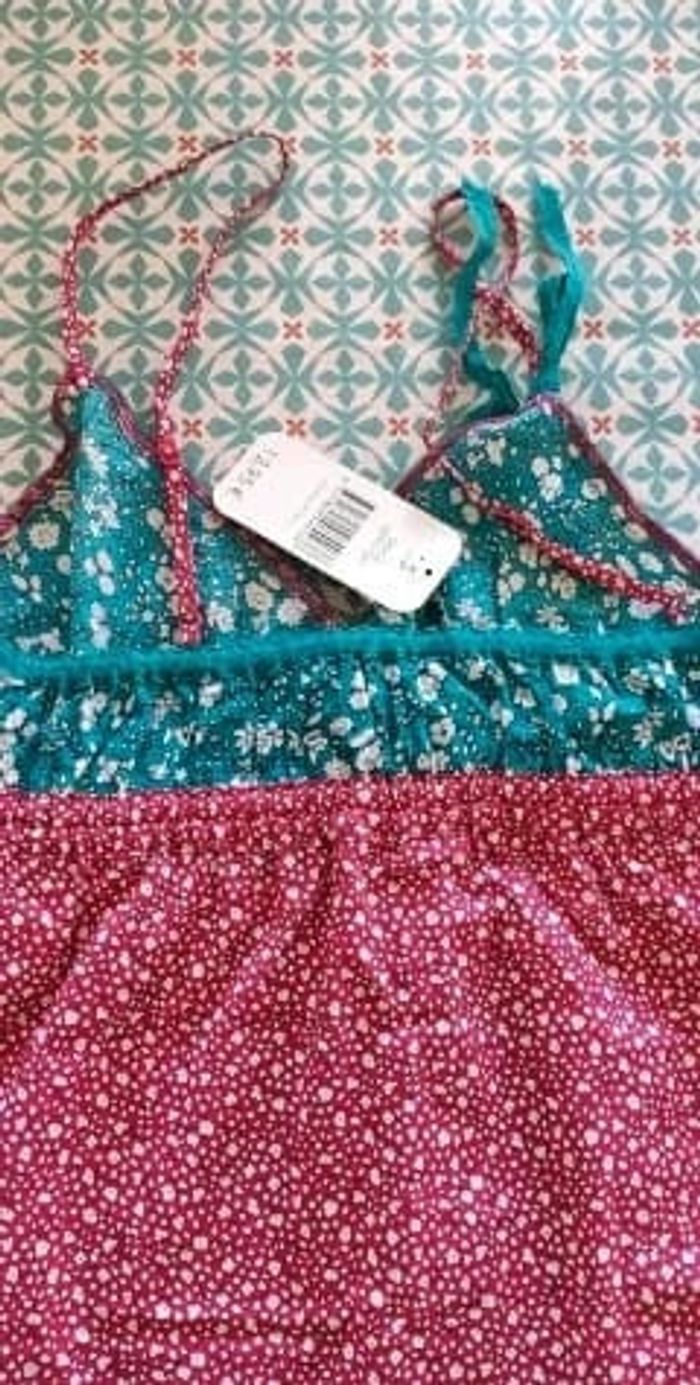 Caraco débardeur top à bretelle neuf de la marque Undiz. Imprimé liberty framboise fuchsia bleu et blanc. Taille S. #vulariFemmesS36 #vulariUndiz