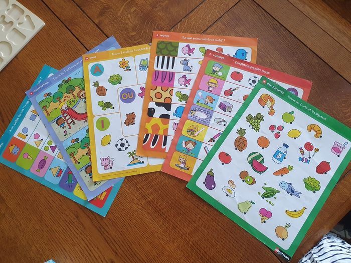 12 grandes planches, + de 60 questions pour découvrir les couleurs, formes, motifs, sons ; observer et associer les images, chiffres et quantités... Dès 3 ans Je peux livrer entre Champier et Bourgoin Jallieu, ainsi qu'entre Champier et Moirans / Voiron