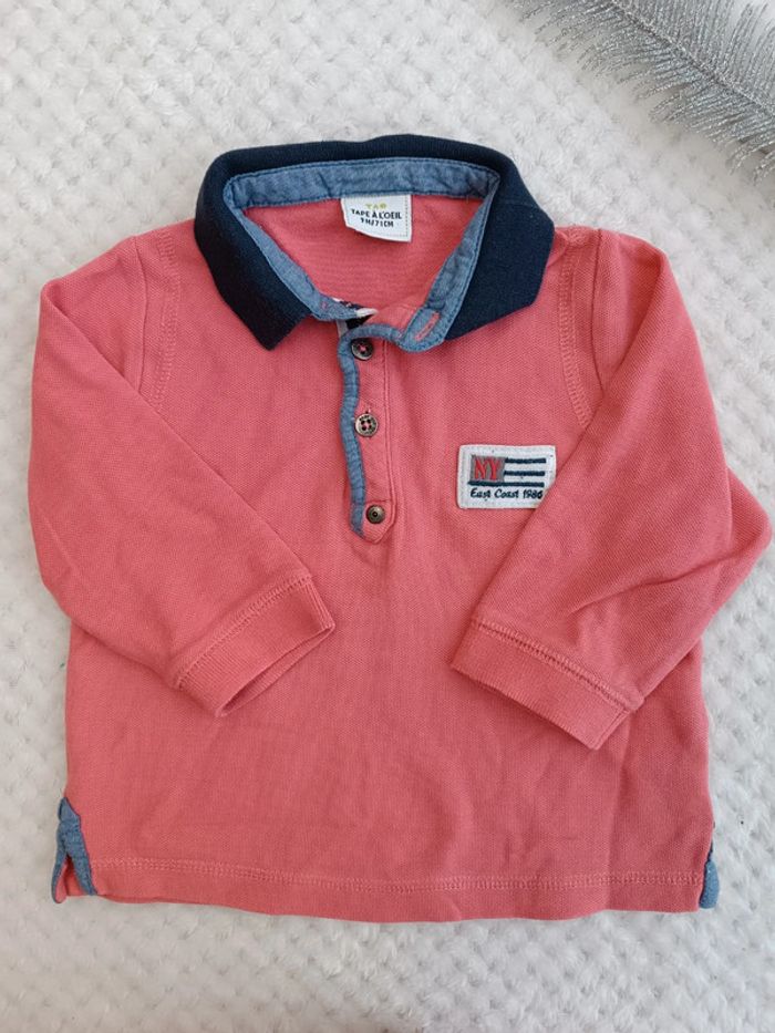🔾Polo rose saumon Tape Ă  l'Ɠil - 9 mois🔾 - photo numĂ©ro 2