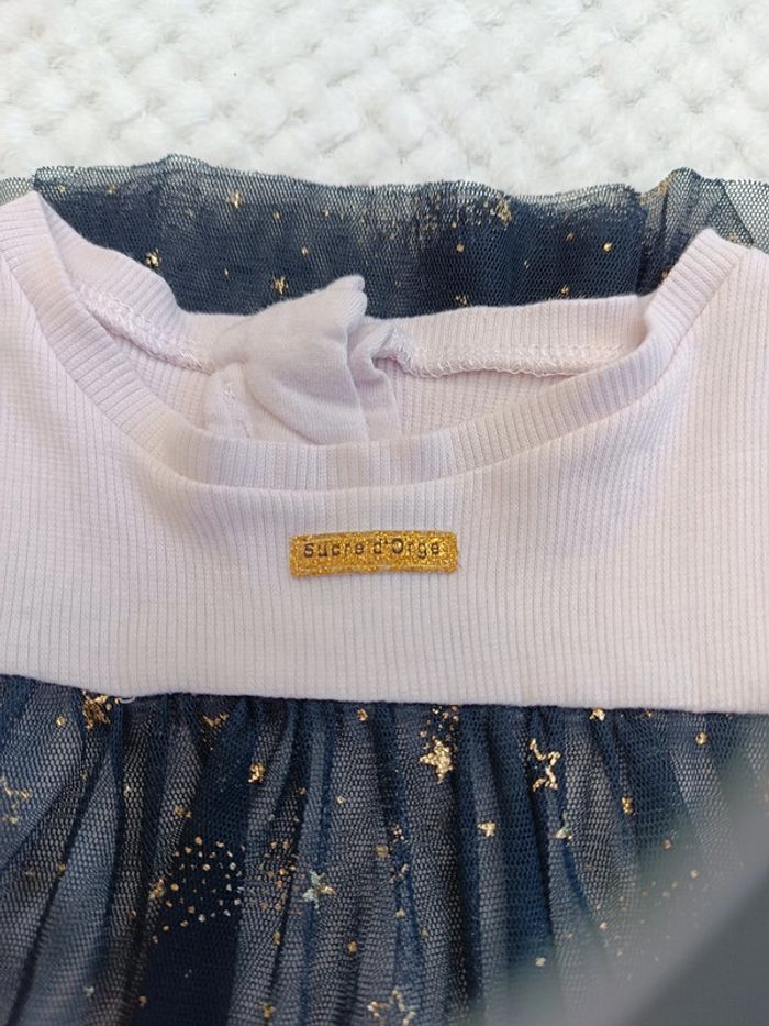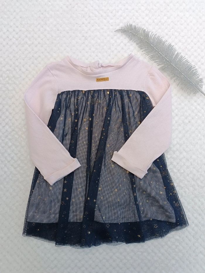 🛍️ Dressing trié par taille ! Retrouvez encore plus d’articles fille en 18 mois ici ➡️ #lilifille18m 👗 Une jolie robe confortable et élégante, parfaite pour toutes les occasions ! Caractéristiques : 📏 Taille : 18 mois 🏷️ Marque : Sucre d'Orge 🎨 Couleur : Rose (haut) & Bleu marine avec étoiles dorées (bas) 👚 Manches : Longues, idéale pour la mi-saison 🌟 Détails : Volant type pull à partir de la poitrine 🔘 Fermeture : Boutons-pression dans le dos 🧵 Matière : Tissu fin, léger et agréable à porter ✨ État : Bon état car les manches se retroussent, mais ne tiennent pas en place, il faudrait sans doute un petit coup de fer à repasser pour régler ça. 📦 Envoi rapide via Mondial Relay 💶 Réduction automatique, n'hésitez pas à créer un lot ☺️ 📩 N’hésitez pas à me contacter pour plus d’informations.