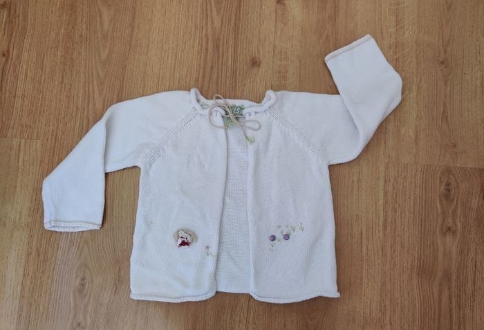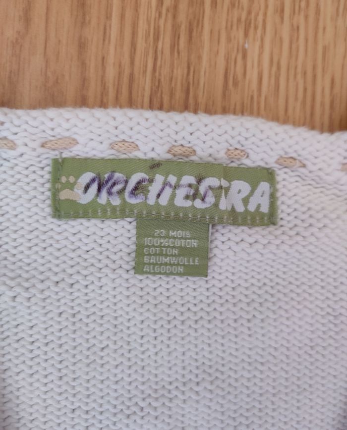 Beau gilet blanc en maille Orchestra Taille 23 mois 100% coton Avec petites fleurs brodées