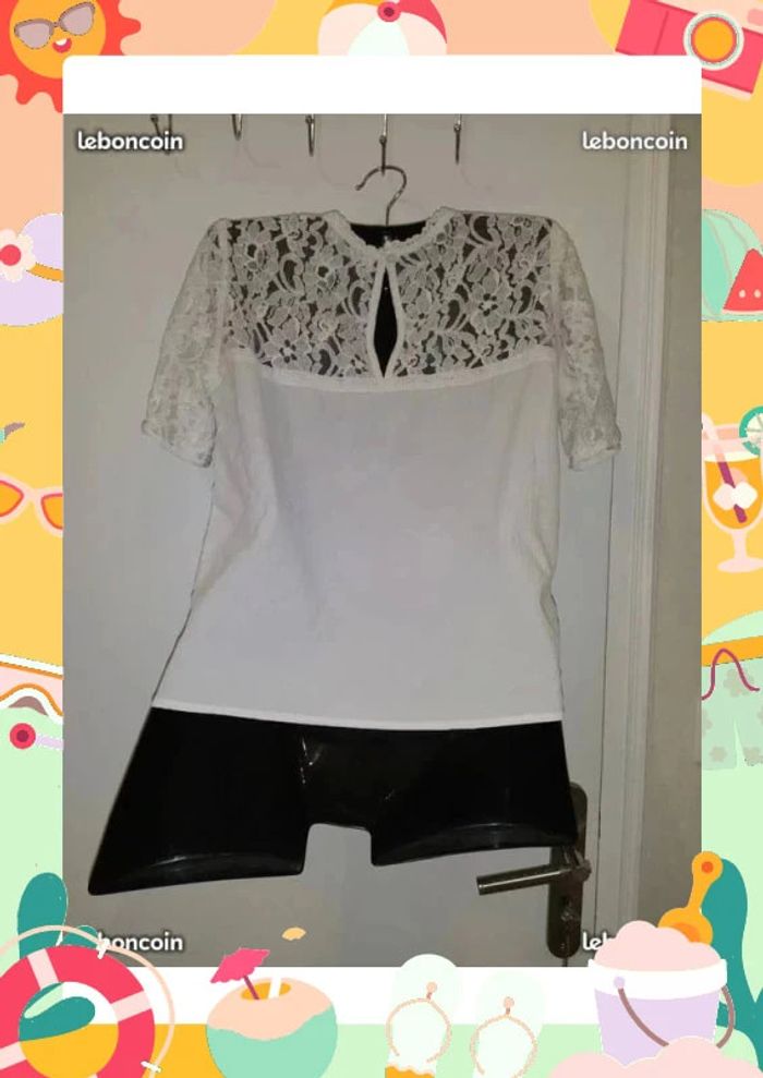 Haut tunique blanc avec dentelle Jennyfer taille M 38 envoi très rapide et si vous choisissez l'envoi par mondial relay je dépose au centre de tri mondial relay directement pour réception du colis très rapide. #sylvief95_femme38