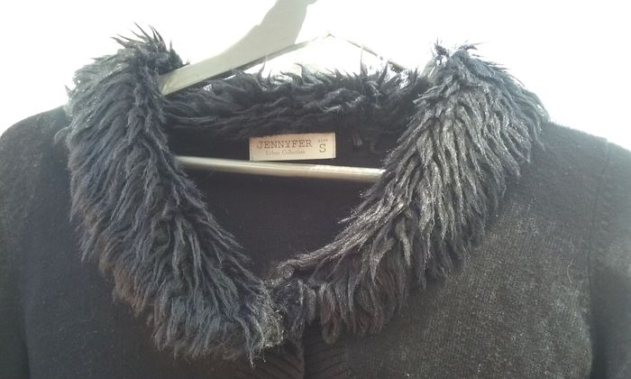Fermeture un bouton, col en fausse fourrure.