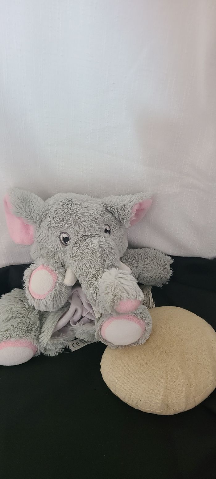 Peluche éléphant SANODIANE bouillotte grise poche ventre 40 cm - photo numéro 5