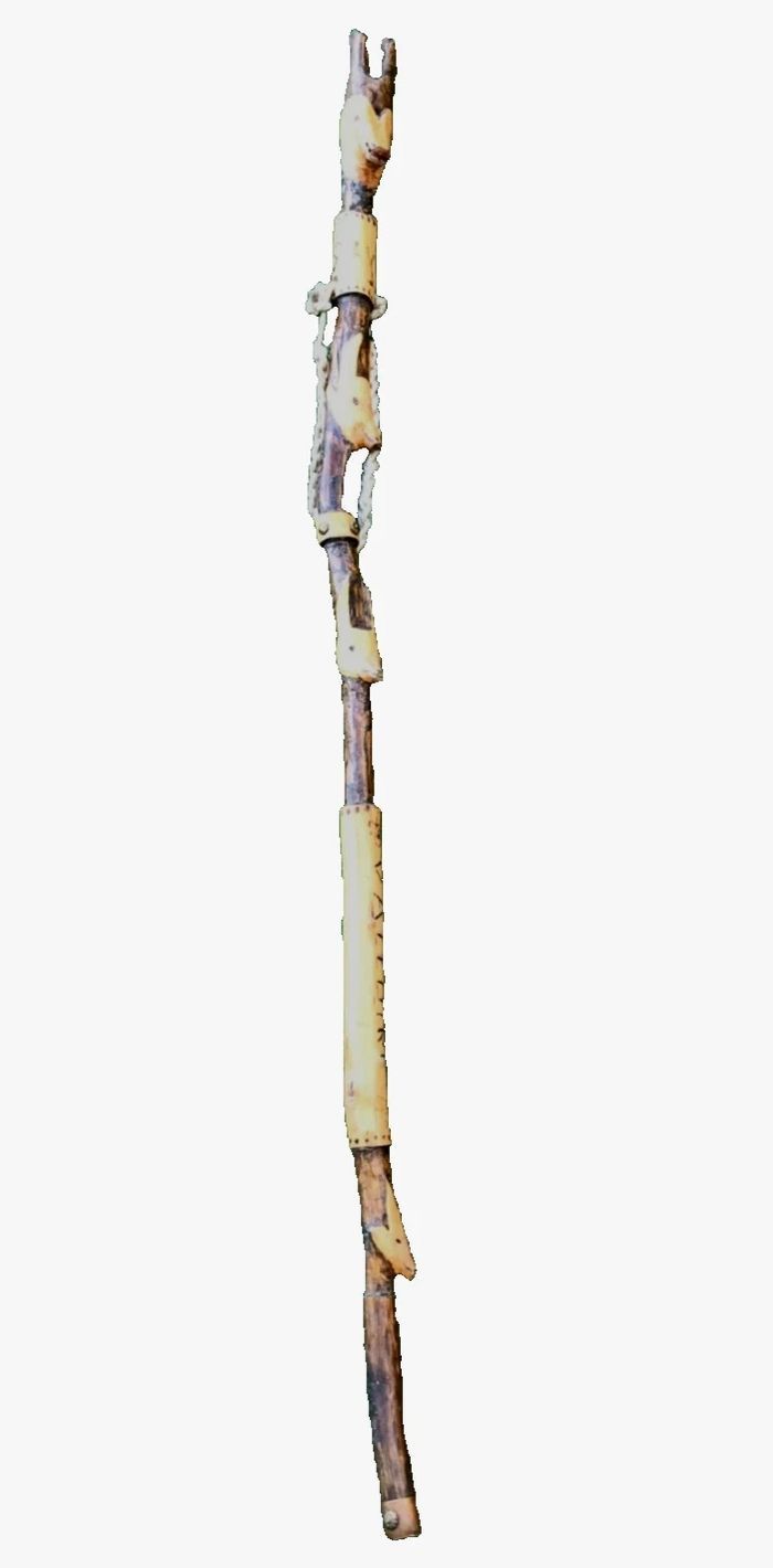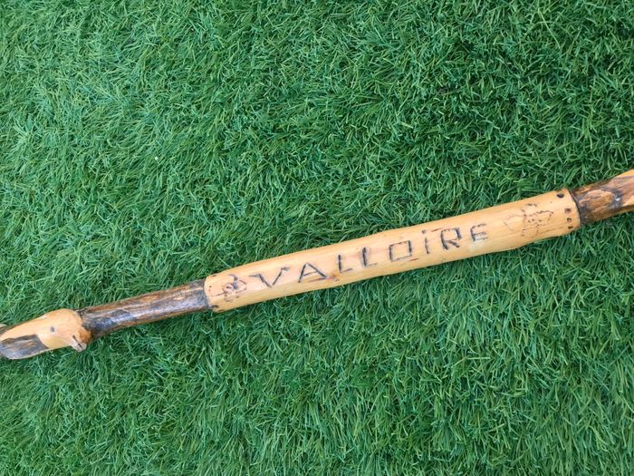 Bâton de marche Tête de chamois Bois sculpté et gravé Savoie Valloire