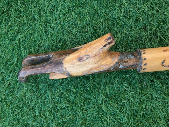 Bâton de marche Tête de chamois Bois sculpté et gravé Savoie Valloire - photo numéro 10