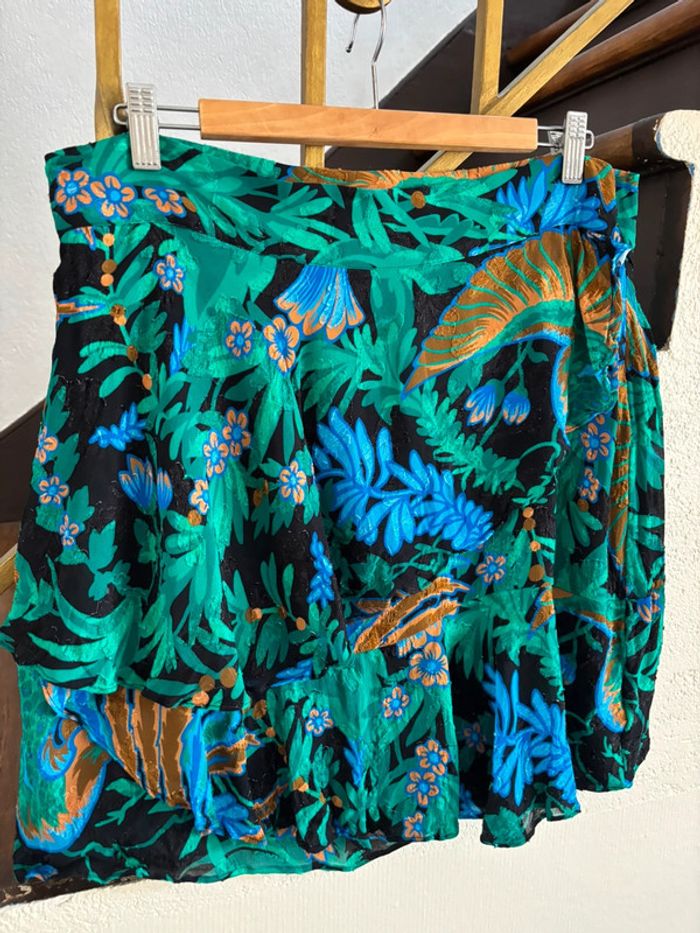 Jupe houston tropico Sezane Drappé / a volant Motif colorée Taille 44 Viscose #jupe #sezane #jupefemme #jupecourte Colorful green ruffled skirt, tropical print Bunter grüner Volantrock, tropischer Print Falda verde con volantes, estampado tropical Gonna verde con volant, fantasia tropicale Saia verde com babado, estampa tropical Sciorta glas ildaite le ruffles, prionta trópaiceach Kleurige groene rok met ruches, tropische print