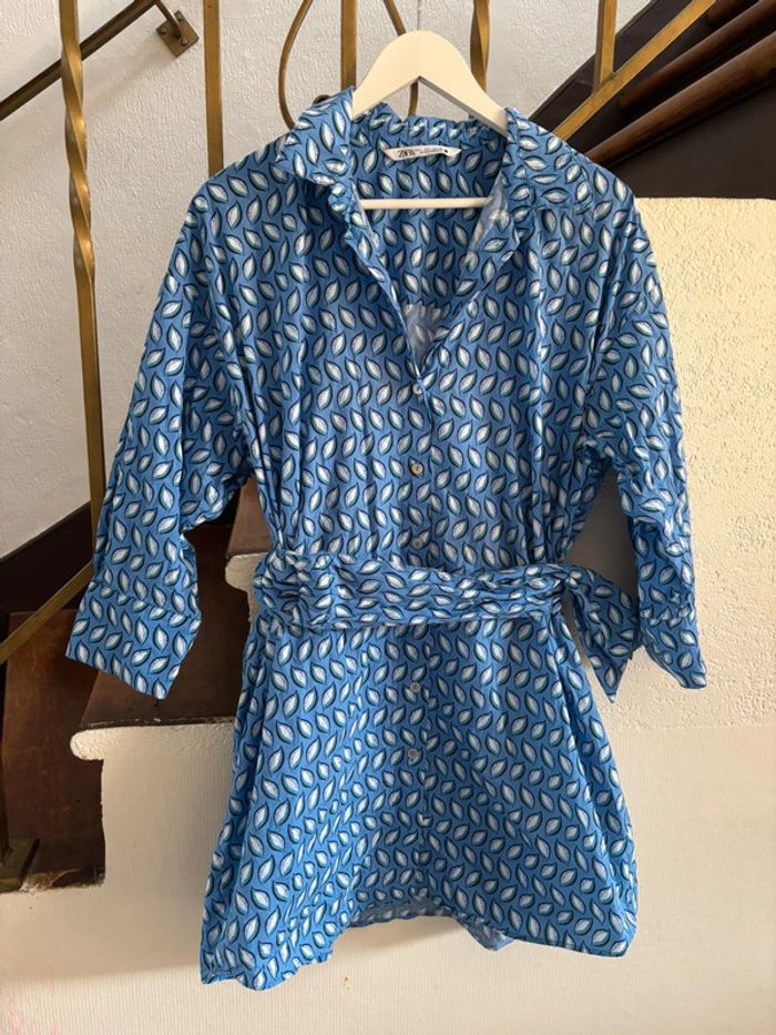 Robe chemise Zara Robe chemise ZARA à imprimé feuilles, tons bleu clair et bleu marine. Taille L Légère, fluide et confortable, idéale pour le printemps et l’été. Ceinture assortie à nouer à la taille. Peut se porter de manière habillée ou décontractée. Très bon état, peu portée. #robe #chemise #robechemise #zara #nouvellecollection #zara2025 overhemdjurk met ceintuur bladprint ZARA soepel licht zomer chic casual vestido camisero con cinturón estampado de hojas ZARA fluido ligero verano elegante casual shirt dress with belt leaf print ZARA flowy lightweight summer chic casual abito camicia con cintura stampa foglie ZARA fluido leggero estate elegante casual vestido camisa com cinto estampa de folhas ZARA fluido leve verão elegante casual gúna léine le crios prionta duilleog ZARA scaoilte éadrom samhradh galánta ócáideach Hemdblusenkleid mit Gürtel Blattmuster ZARA fließend leicht Sommer elegant lässig