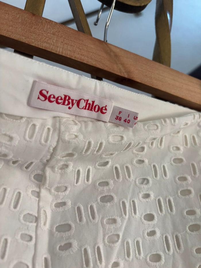 Pantalon SEE BY CHLOÉ Ajouré / perforée Blanc Neuf jamais porté Doublure Taille 36 FR Sublime pour l’été au bord de plage 100% coton #seebychloe #chloe #pantalon #neuf #ajouree Witte geperforeerde broek, nieuw Pantalón blanco calado/perforado, nuevo Pantalone bianco traforato, nuovo White perforated trousers, new Weiße durchbrochene/perforierte Hose, neu Calças brancas perfuradas, novas