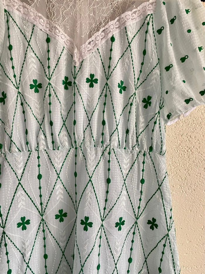 Robe dentelle Sandro vert broderie - photo numéro 4