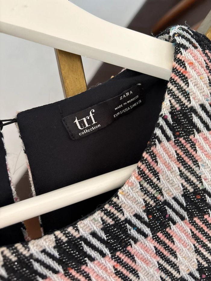 Petite robe courte Zara en tweed Idéale avec une chemise blanche en dessous Taille XS Rose / noir Bon état Boutons doré #robe #zara #tweed Vestido tweed rosa negro Abito tweed rosa nero Vestido tweed rosa preto Gúna tuíod bándearg dubh Pink black tweed dress Tweedkleid rosa schwarz