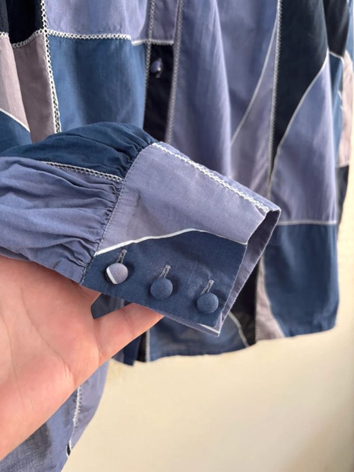 Modèle Lealys de chez Sézane. Patchwork bleu, manches longues, fronces épaules et poignets. Boutons recouverts, coupe ample. 100 % coton. Prix neuf : 115 €. Très bon état, portée une fois. Taille 36. Pièce rare et recherchée. Bohème , manche bouffante, loose. Cette blouse est idéale pour apporter une touche bohème et colorée à vos tenues. #blouse #sezane #lealys #blouse #loose #oversize #chemise #patchwork Blouse overhemd in blauwe patchwork. Boho en los oversized. Blusa camisa de patchwork azul. Bohemia y holgada oversized. Blusa camicia patchwork blu. Stile boho e ampia oversized. Blusa camisa em patchwork azul. Boémia e larga oversized. Blús léine i bpaisteáil gorm. Boihéamach agus scaoilte oversized. Blouse shirt in blue patchwork. Boho and loose oversized. Bluse Hemd im blauen Patchwork. Boho und locker oversized.