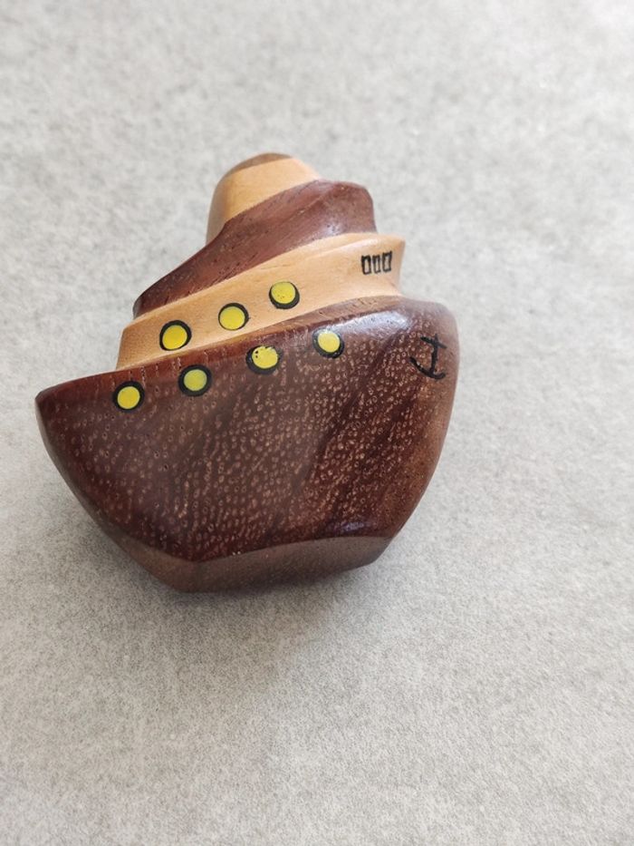 3 objets décoratifs en bois : 1 paquebot : longueur 5 cm, hauteur 5 cm, profondeur 1.5 cm 1 locomotive : longueur 5 cm, hauteur 5 cm, profondeur 1.5 cm 1 voilier : longueur 5 cm, hauteur 5 cm, profondeur 1 cm Rendez vous possible sur Collegien ou Coulommiers