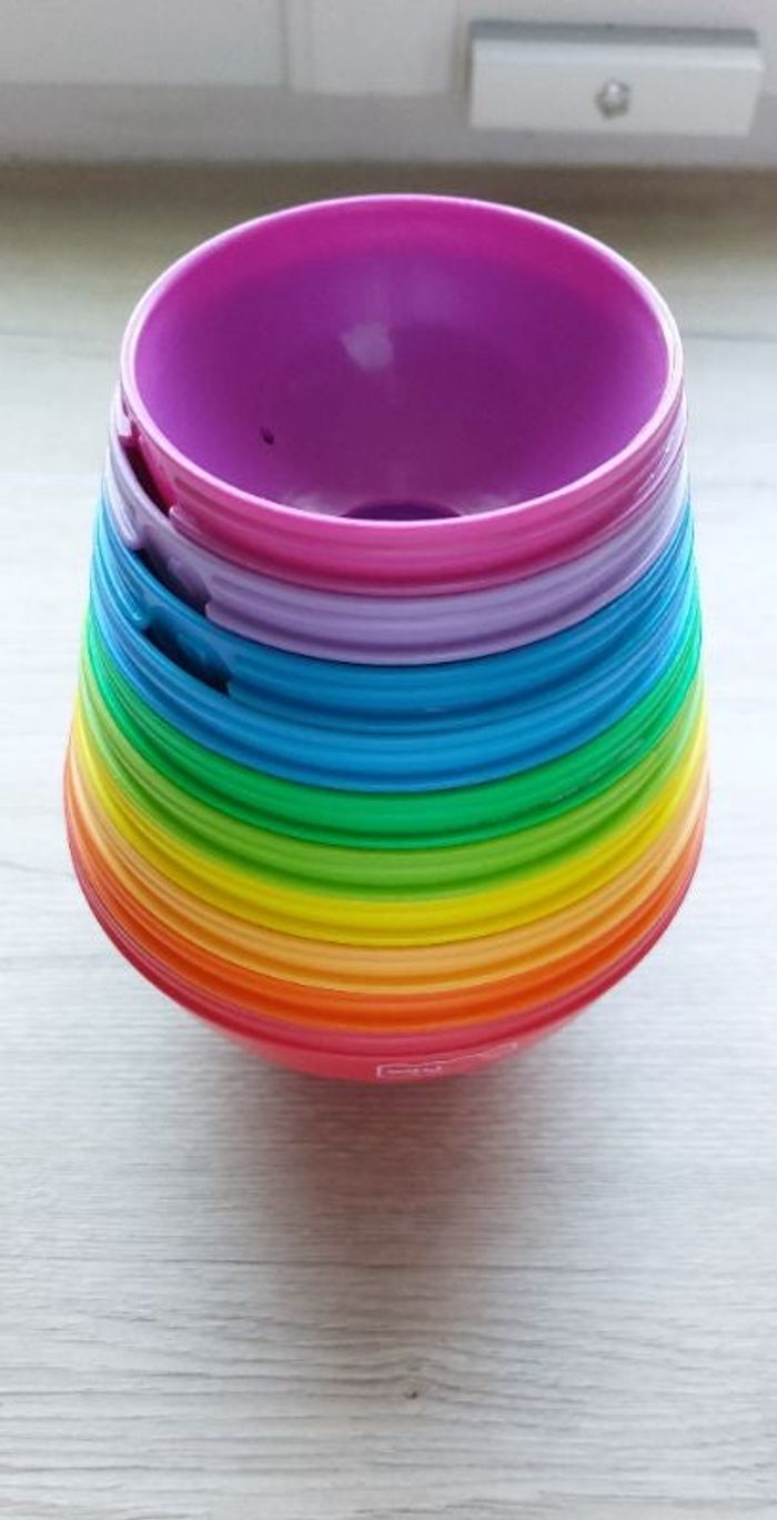 Manque jusque là petite boule que l'on met en haut de la petite tour Mais n'empêche pas que bébé s'amusera avec sans soucis Nettoyé et désinfecté pour la vente