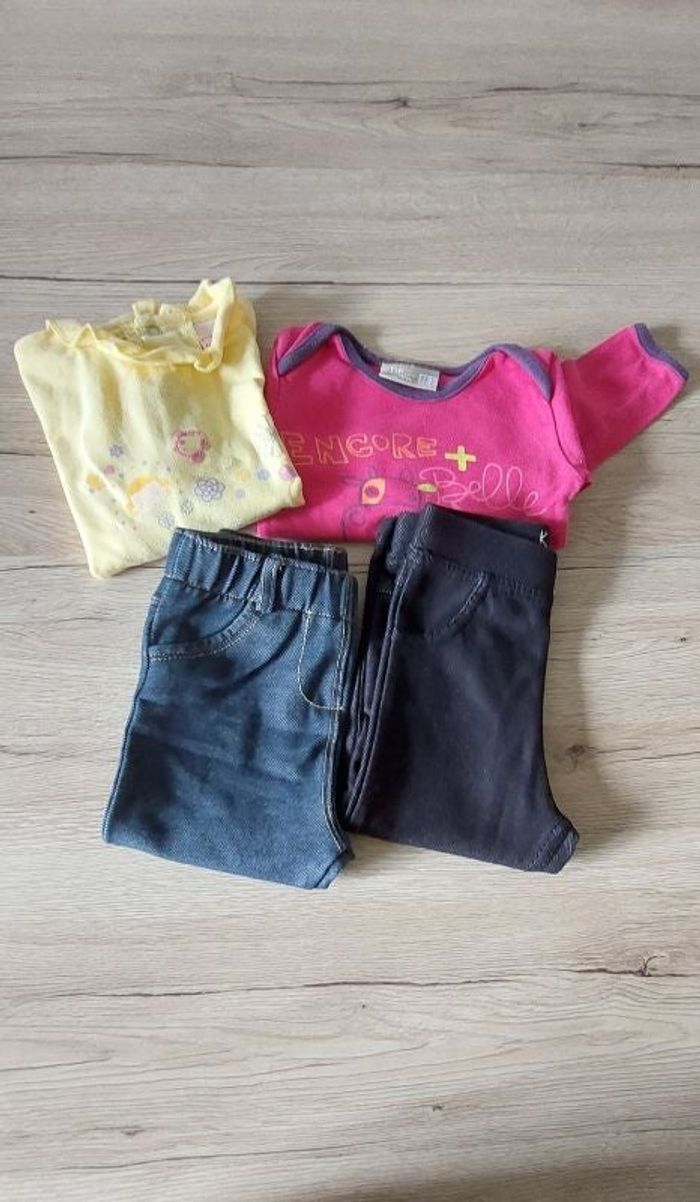 Lot 2 leggings, 1 body, 1 tee-shirt manches longues bébé fille 1 an