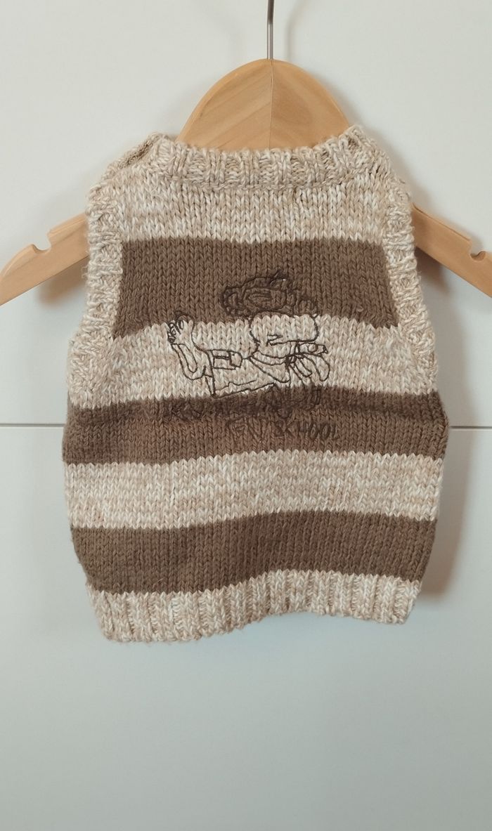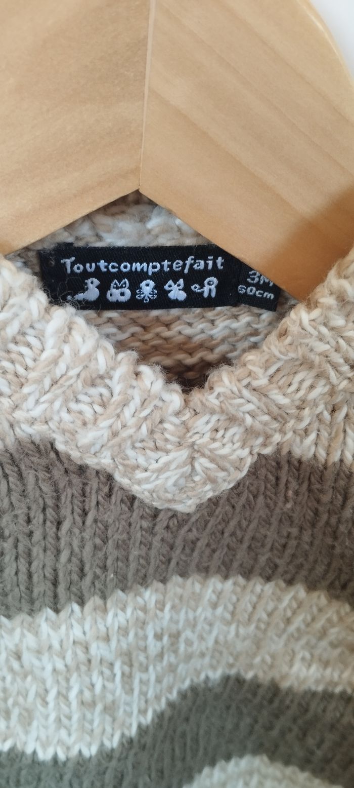 Bonjour, Je vends ce pull sans manches pour garçon en taille 3 mois de la marque tout compte fait en très bon état