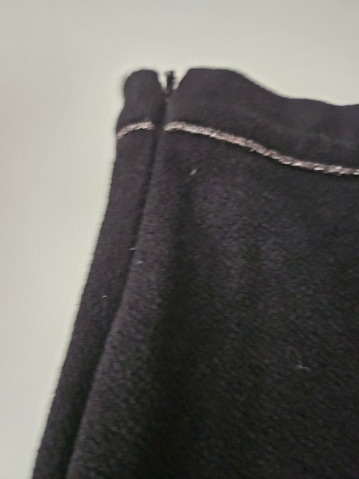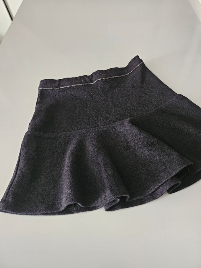 Jupe courte noire évasée. Petit liseré argenté à la taille. Taille réglable. Fermeture éclair sur le côté. Marque : Kiabi Taille : 8 ans