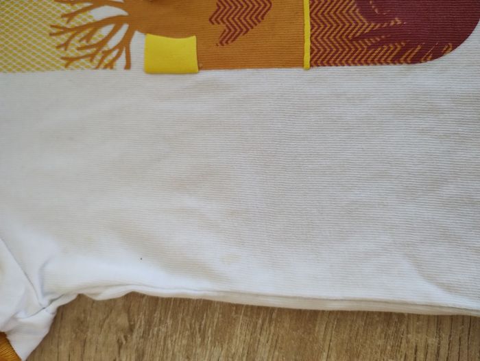 T-shirt marque OBAIBI très bon état. Simplement une petite tache jaune sur le côté, peu visible (voir photo)