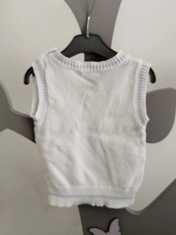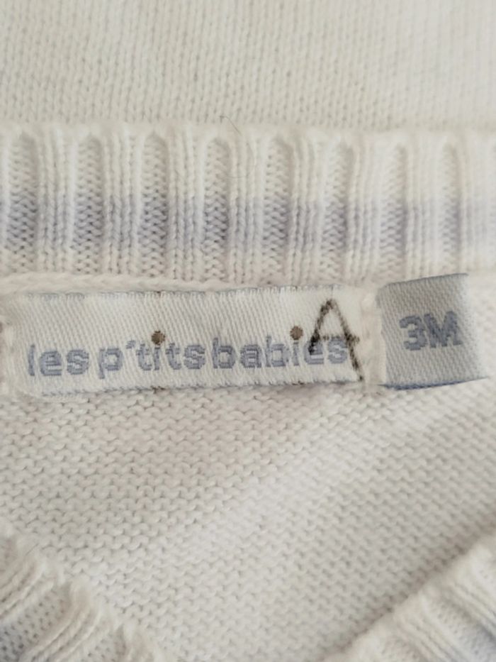 Pull blanc sans manches col en V Les p'tits babies taille 3 mois - photo numéro 4