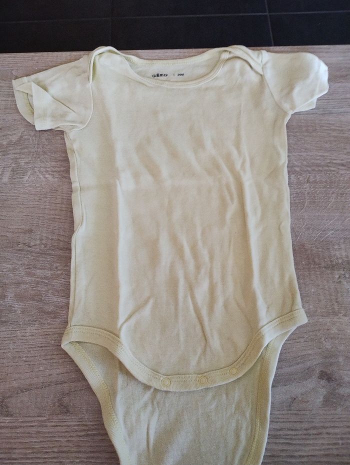 Lot de bodies été manches courtes ou sans manches marque Gémo 36 mois. 10 photos mais j'en ai encore 2 en plus (un blanc très classique sans manches et un bleu manche courte). Ils sont tous en bon état voir en très bon état.